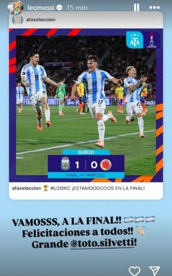 反而惊喜!梅西的队友打入的进球帮助阿根廷U20队进入青年世界杯决赛,并在赛后受到了足球冠军的直接祝贺。 2025年U-20世界杯半决赛中,阿根廷凭借替补球员马特奥·西尔维蒂的致命一击,以1-0战胜哥伦比亚,安全晋级决赛。赛后,这位19岁的球星不仅是球队的英雄,还得到了“球王”梅西的祝贺。西尔维蒂虽然不是球队的主力球员,但在本次比赛中他却多次扮演“超级替补”的重要角色。他在此前对阵尼日利亚的四分之一决赛和对阵墨西哥的四分之一决赛中都有进球,还在首场对阵古巴的比赛中贡献了一次助攻。而现在,在最重要的半决赛中,他们再次取得领先。下半场第27分钟,替补出场的西尔维蒂接到一记精妙传球,抓住队友普雷斯塔尼,将球打出。d 冷静地用右脚外侧将他推向球门。他一举拿下比赛,帮助阿根廷队晋级决赛。这位19岁的球员从未在本次比赛中首发,但总共出场147分钟并打进3球。他场均“每49分钟进一球”,效率非常高。尽管面临队友阿莱霍·扎尔科的激烈竞争,但他始终能够利用有限的机会,并可能成为教练迭戈·普拉森特手中最有力的替代武器。值得注意的是,西尔维蒂和梅西目前属于同一支美国职业足球大联盟球队——迈阿密国际队。今年8月,迈阿密国际以大约600万美元的价格从纽维尔老男孩队签下了这位阿根廷球星。梅西不仅在俱乐部内部照顾他,两人之间的关系也非常密切。西尔维蒂进球后,梅西立即在其Instagram Story上发布了祝贺信息:“加油!我们再次进入决赛!恭喜大家!不可思议,@toto.silvetti!”这一举措极大地鼓舞了西尔维蒂。巧合的是,西尔维蒂的名字“马特奥·蒂亚戈”与梅西的两个儿子同名,这也促成了他们师生关系的伟大命运。赛后,西尔维蒂感谢队友普雷斯塔尼的帮助,并表示:“阿根廷缺乏优秀的球员。”他以前从未这样做过。我们很幸运能有这样的球员。 像普雷斯塔尼这样的顶级球员。”他还透露,主教练普拉森特在中场休息时进行了战术调整,改用双前锋,以提高空间的利用。 “我觉得我可以更好地利用空间,比赛变得更加流畅。只要我保持纪律,我就能控制局势,”他说。目前,西尔维蒂已经为迈阿密国际队踢了三场比赛。家人陪伴他征战智利,看着他一步步成为未来的阿根廷足球明星。