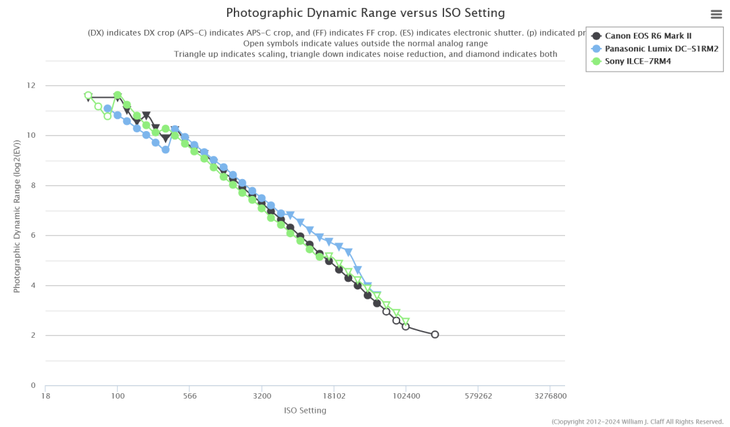 松下S1M2动态范围测试结果,低灵敏度面积比类似