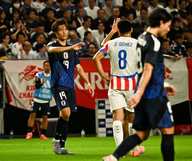 美国、加拿大和墨西哥之间的世界杯预选赛将在本月的国际比赛中恢复,已经获得正赛资格的球队将有时间通过热身赛进行准备和保持状态。当天,日本队与经历了亚洲区和南美区预选赛的巴拉圭队在日本举行的麒麟杯上交锋。本场比赛,日本队在控球方面占据优势,但巴拉圭队进攻效率更高。他们凭借阿尔米隆和戈麦斯的进球两次取得领先。然而日本队最后时刻追平比分,主场2-2击败巴拉圭!拥有众多欧洲球员的日本队无疑是亚洲足坛最强的球队,有能力与其他强队抗衡。目前世界排名第37位的巴拉圭队在上届世界大赛中一共与日本队交锋过7次,不过他们的战绩已经仅2胜1平4负,最近4次直接交锋均告失利。可见日本足球近年来取得了长足的进步。主场作战的日本队此役阵型为3421。首发门将仍然信任铃木彩芽。世群步、铃木淳之介和渡边刚负责防守。中场有南野拓美、田中葵、佐野海州和道安律。中村圭人和伊藤纯也组成双中场组合,小川功起一人前锋。比赛正式开始后,日本队大力逼抢,对巴拉圭后防线施压。第5分钟,小川韩治头球攻入对方禁区,可惜偏出球门。球直接来自底线和背景。巴拉圭守住了主队前三轮进攻,并在第21分钟打破了场上僵局。接到队友纽卡斯尔的长传后老将阿尔米隆停球后将球打入球门,帮助球队客场1-0领先。然而,日本队仅仅五分钟就追平了比分。小川汉司在禁区前突然射门。巴拉圭门将扑向皮球,但皮球飞入球门。这个幸运的进球让日本队1-1领先。双方换了阵容,比赛重赛,日本队占据优势,攻破了巴拉圭队的大门。他们首开纪录,但遗憾的是越位在先,南野拓实的进球最终被裁判判为无效。巴拉圭摆脱困境,第64分钟再次领先。卡塞雷斯右路45度传中,迭戈·戈麦斯头球破门,巴拉圭2-1。日本队不想在主场输球,做出了换人调整。守保教练代表蒲田大知和斋藤光希致意。日本人球队想要增加进攻威胁,最后时刻发起猛烈进攻,最终在加时赛第94分钟扳平比分。同样替补上场的上田桐生接到右翼队友的传中,打进一记精妙入球,将领先优势缩小到两分。战平巴拉圭后,日本队将休息三天,然后迎战实力强劲的巴西队。虽然现在桑巴队的战斗能力和竞争力无法与全盛时期相比,但明星球员的个人技术和阵容的豪华程度令人印象深刻。从成绩上看,目前对日本队仍有较大优势,同时还拥有主场优势的日本队能否战胜桑巴军团,还有待观察。